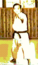 3. The disciple then pulls back with the left hand, drawing the agressor forward. At the same time, the right hip rotates forward, the weight shifts forward, and the right hand punches straight forward into the agressor's floating ribs - or into the temple - on the left side.